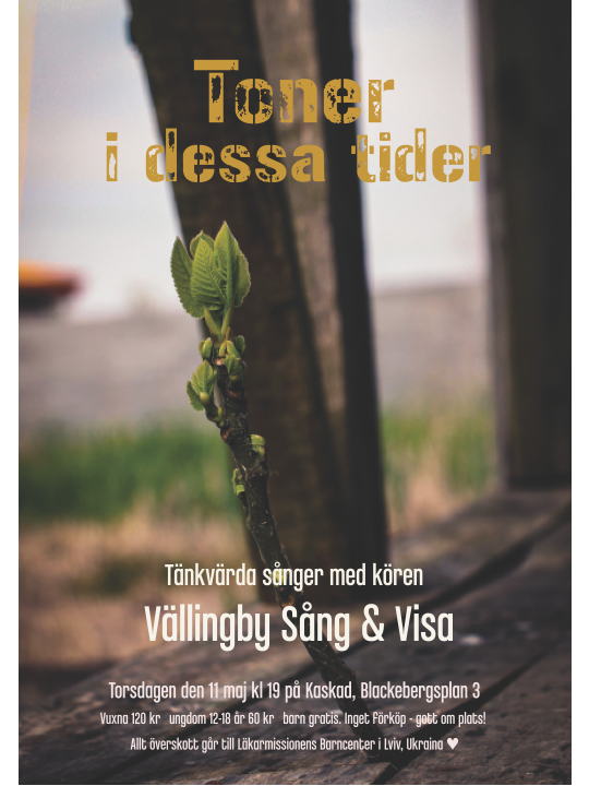 Vi jobbar nu inför en ny konsert med arbetsnamnet Toner i dessa tider som vill ingjuta tröst, glädje och hopp. Tid och plats blir den 11 maj på Kaskad.